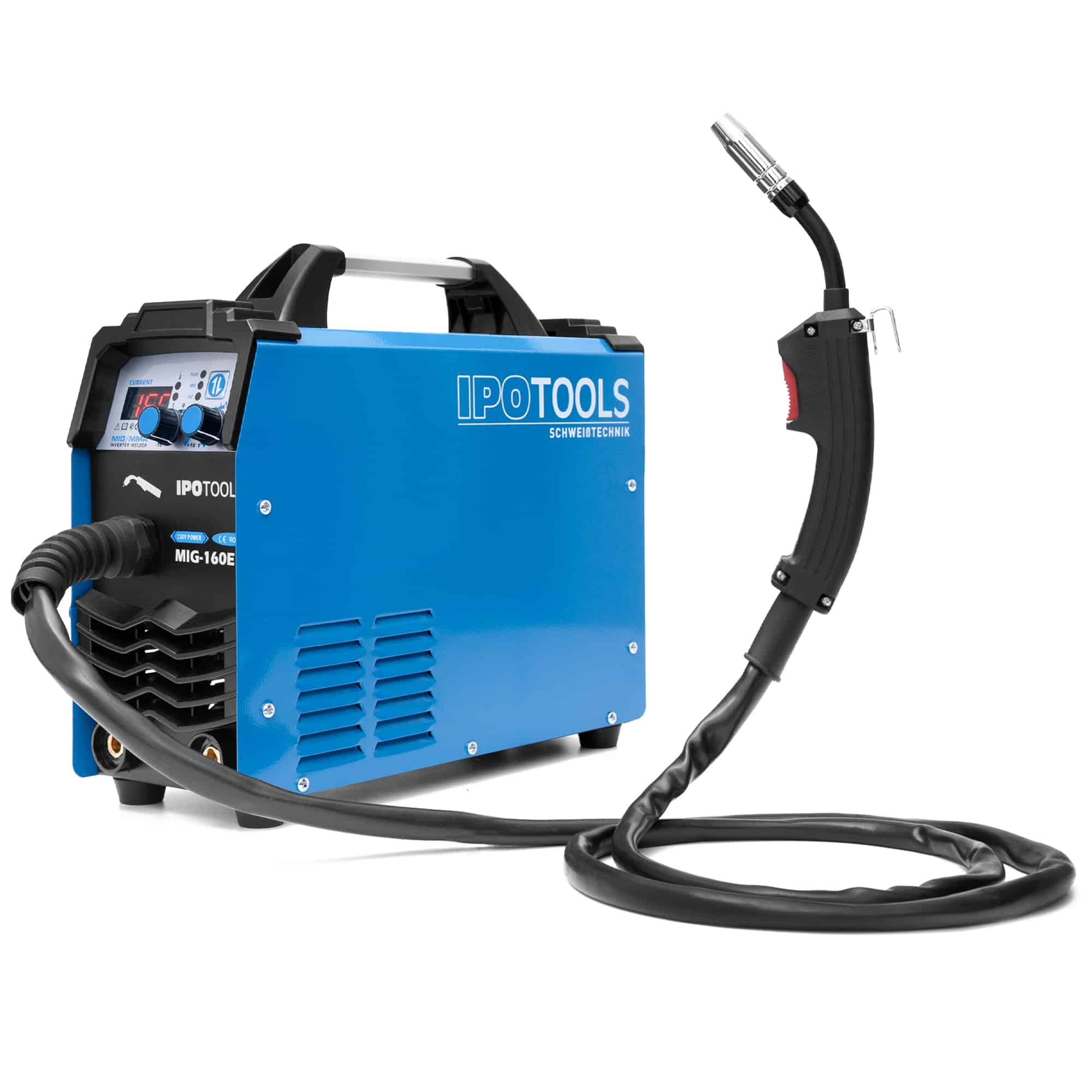 Poste à souder d’occasion mig sans gaz IPOTOOLS 160ER. La MIG-160ER est une soudeuse MIG MAG 5en1 de haute qualité et parfaitement conçue, avec affichage numérique, qui convainc par sa fonctionnalité, sa facilité d’utilisation et sa qualité exceptionnelle dans sa catégorie !